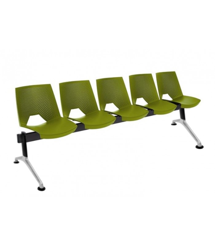 - Bancada de 5 plazas con carcasa monoblock fabricada en polipropileno de alta resistencia, con respaldo perforado que mejora la transpiración. Higiénica y fácil de limpiar, brinda comodidad y un toque moderno en recepciones o salas de espera.