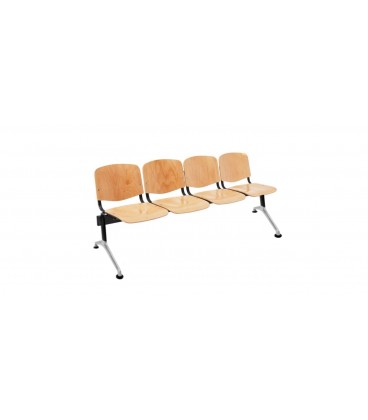 La bancada para salas de espera de 4 asientos. Asiento y respaldo fabricados de madera de haya, laminada, prensada y barnizada. La estructura es de acero con patas de aluminio, lo que la hace muy segura, resistente y fácil de limpiar. Además de ser cómoda, es adecuada para un uso intensivo. Está disponible en variantes de 2-3-4 y 5 asientos y se puede sustituir un asiento por una mesa con las mismas dimensiones que un asiento (consultar opción).