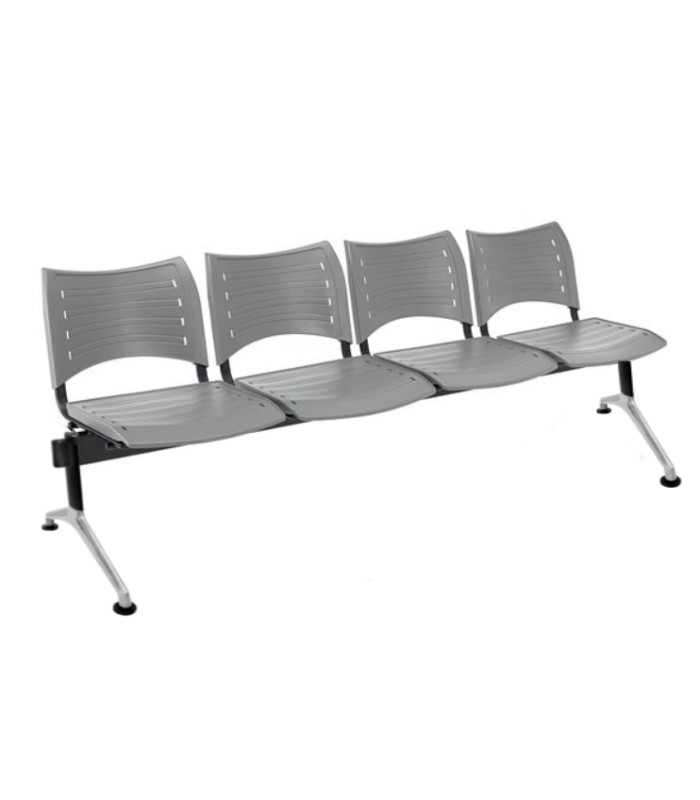 La bancada de 4 asientos está fabricada en polipropileno y cuenta con un material seguro para un uso intensivo. Tiene un marco de acero con patas de aluminio para brindar apoyo. Es higiénica y fácil de limpiar, además de ser cómoda y disponible en varios colores. También está disponible en versiones de 2-3 y 5 asientos, y se puede agregar una mesa del mismo tamaño que un asiento (consultar opción).