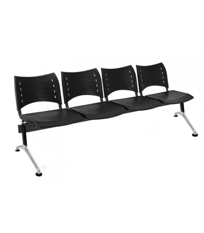 • Bancada de 4 asientos fabricados en polipropileno. Estructura fabricada en marco de acero con patas de aluminio color negro-aluminio.