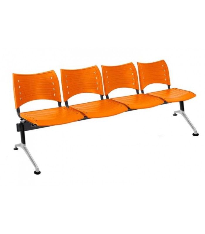 La bancada de 4 asientos está fabricada en polipropileno y cuenta con un material seguro para un uso intensivo. Tiene un marco de acero con patas de aluminio para brindar apoyo. Es higiénica y fácil de limpiar, además de ser cómoda y disponible en varios colores. También está disponible en versiones de 2-3 y 5 asientos, y se puede agregar una mesa del mismo tamaño que un asiento (consultar opción).
