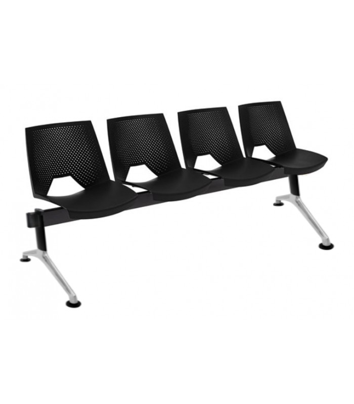 • Bancada de 4 plazas con carcasa monoblock fabricada en polipropileno de alta resistencia, con respaldo perforado que mejora la transpiración. Higiénica y fácil de limpiar, brinda comodidad y un toque moderno en recepciones o salas de espera.