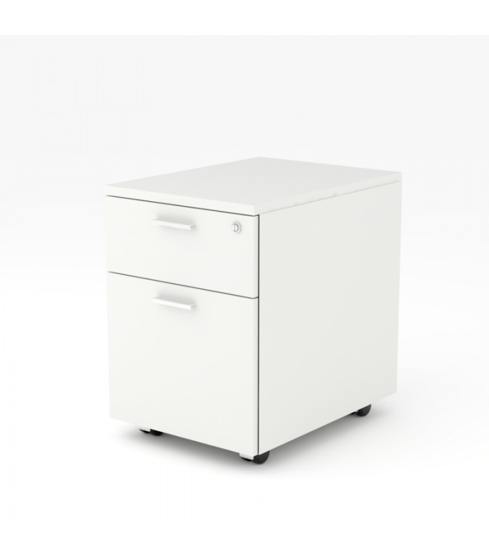 - Cajonera rodante de 2 cajones fabricada en tablero bilaminado de 19mm de grosor con una trasera de 10mm.