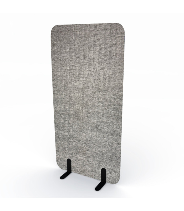 Optimiza tu espacio de trabajo con este biombo panel acústico, diseñado para mejorar la privacidad y reducir el ruido en oficinas, salas de reuniones y espacios de trabajo compartidos. Su elegante acabado con líneas verticales y esquinas redondeadas aporta un toque moderno y sofisticado. Fabricado a base de PET (Tereftalato de Polietileno), procedente de materiales reciclados. Cuenta, además, con unos soportes para la base en acero, en color negro, gris y blanco. Ideal para quienes buscan privacidad, confort y un diseño estético en su espacio de trabajo.