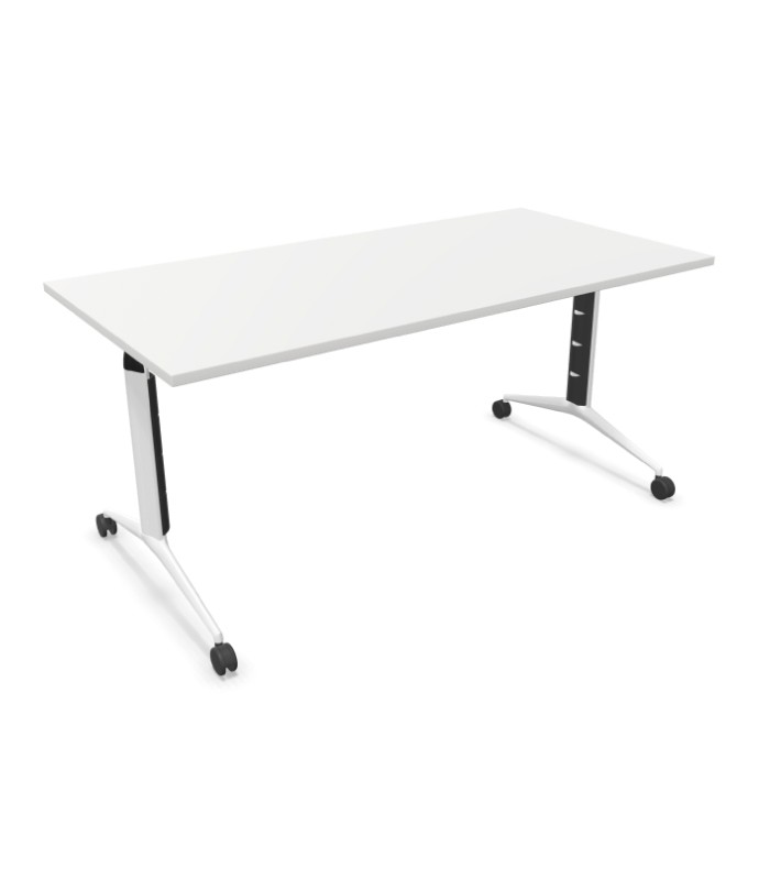 Mesa plegable con diseño moderno y funcional, ideal para optimizar espacios en oficinas, salones de reuniones o entornos educativos. Fabricada con materiales de alta calidad, esta mesa cuenta con un tablero resistente de melamina, en color blanco, de 25 mm de grosor y patas de aluminio inyectado con acabados elegantes en blanco. Su sistema abatible permite que el tablero se pliegue fácilmente, facilitando el almacenamiento en espacios reducidos. Incluye ruedas con frenos para un desplazamiento sencillo y seguro, ofreciendo máxima versatilidad y facilidad de uso.