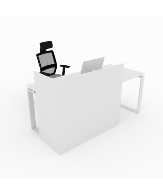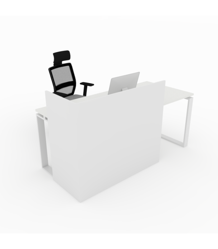 Mesa de oficina moderna con diseño funcional y elegante ideal para espacios de trabajo profesionales o home office. Fabricada con una estructura de marco cerrado metálica, robusta y con una mesa de melamina que ofrece gran resistencia y durabilidad. Sus costados en melamina brinda privacidad y un toque sofisticado al ambiente. Perfecta para combinar estilo y productividad, esta mesa cuenta con amplio espacio para computadora, documentos y accesorios de oficina. Ideal para mejorar la organización y el confort durante la jornada laboral. Aporta un look contemporáneo y profesional a cualquier oficina o despacho.