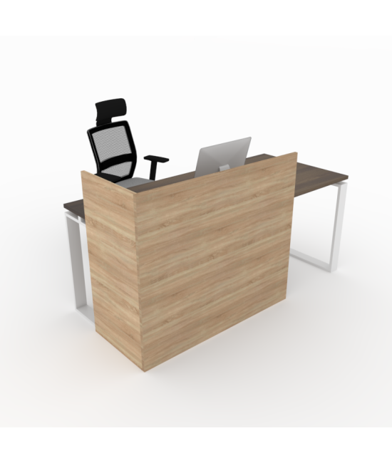 Mesa de oficina moderna con diseño funcional y elegante ideal para espacios de trabajo profesionales o home office. Fabricada con una estructura de marco cerrado metálica, robusta y con una mesa de melamina que ofrece gran resistencia y durabilidad. Sus costados en melamina brinda privacidad y un toque sofisticado al ambiente. Perfecta para combinar estilo y productividad, esta mesa cuenta con amplio espacio para computadora, documentos y accesorios de oficina. Ideal para mejorar la organización y el confort durante la jornada laboral. Aporta un look contemporáneo y profesional a cualquier oficina o despacho.