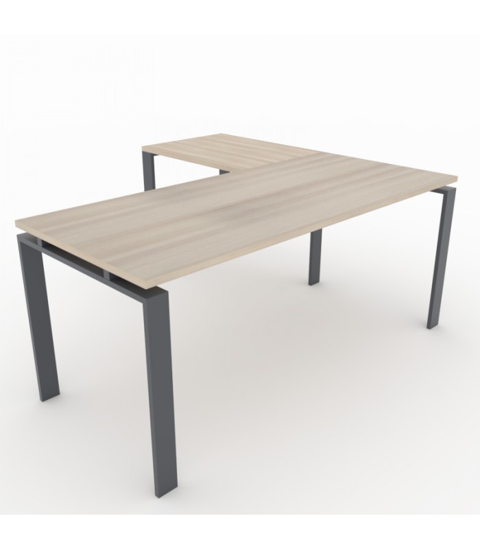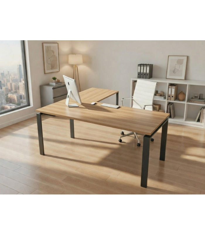 La incorporación del ala proporciona un espacio de trabajo adicional, ideal para organizar documentos, equipos o complementar el área principal. Es especialmente útil para tareas que requieren mayor superficie o para zonas de dirección. -