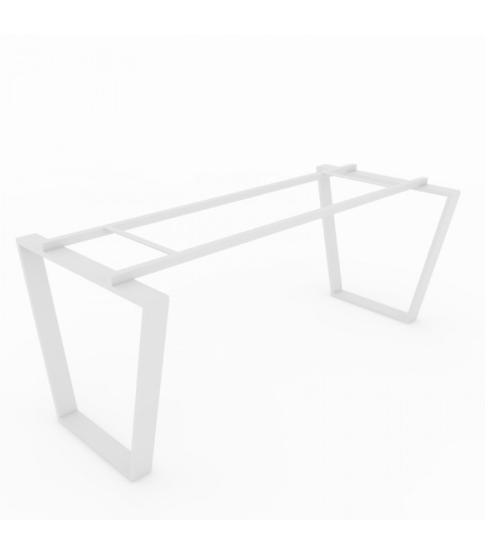 Mesa de oficina o escritorio con un estilo único y una estructura metálica innovadora en forma trapezoidal. La estructura está fabricada de tubo de sección 80/20 mm, que le brindan solidez y un diseño moderno. La tapa de la mesa está fabricada con tablero de melamina de alta calidad de 25 mm de grosor, lo que le da una apariencia robusta y resistente. Es importante destacar la versatilidad de configuración que ofrece esta mesa, lo que la hace ideal para cualquier entorno de trabajo, ya sea operativo o ejecutivo.
