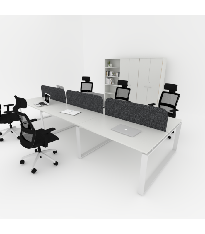 Diseñadas para fomentar la colaboración y mantener el orden, estas mesas operativas multipuesto combinan estética moderna con máxima eficiencia. Su estructura metálica robusta y los acabados en melamina de alta calidad garantizan durabilidad y una superficie amplia para el trabajo diario. El diseño compacto aprovecha cada metro cuadrado, mientras que los Separadores divisorios con propiedades acústicas crean un ambiente profesional y enfocado. Perfectas para oficinas contemporáneas, espacios de coworking y entornos laborales dinámicos. Además, ofrecemos la opción de añadir pasacables, que se pueden encontrar en el menú de complementos, dentro de la categoría de mesas de oficina.