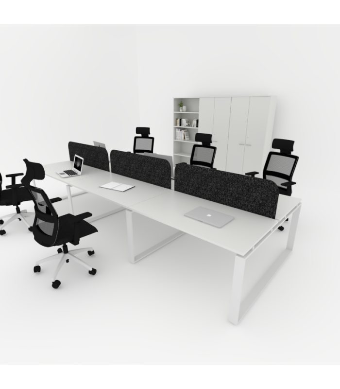 Diseñadas para fomentar la colaboración y mantener el orden, estas mesas operativas multipuesto combinan estética moderna con máxima eficiencia. Su estructura metálica robusta y los acabados en melamina de alta calidad garantizan durabilidad y una superficie amplia para el trabajo diario. El diseño compacto aprovecha cada metro cuadrado, mientras que los Separadores divisorios con propiedades acústicas crean un ambiente profesional y enfocado. Perfectas para oficinas contemporáneas, espacios de coworking y entornos laborales dinámicos. Además, ofrecemos la opción de añadir pasacables, que se pueden encontrar en el menú de complementos, dentro de la categoría de mesas de oficina.