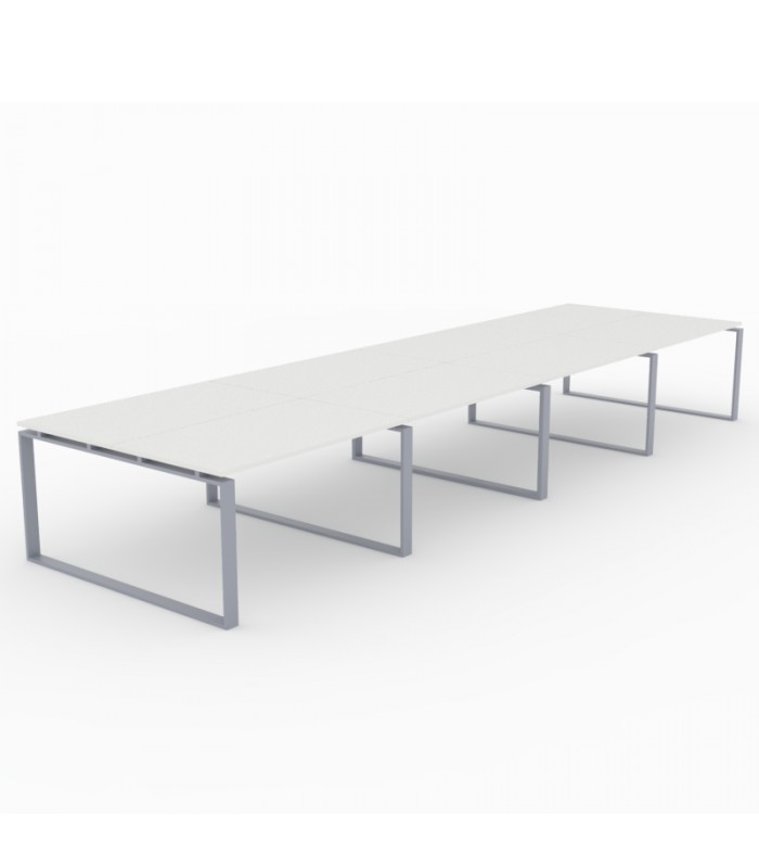 Las mesas operativas multipuesto nos hacen crear espacios cómodos llenos de confort en pocos metros cuadrados, nos aportan estética ya que cada modelo tiene su propio estilo, cada vez con diseños más innovadores y ergonómicos. Llamadas también mesas bench, son una opción funcional y moderna. Son mesas con un diseño compacto que ahorran espacio y son muy funcionales, al permitir la conectividad y colaboración en el entorno laboral. En este caso se trata de una mesa con 8 puestos de trabajo. Puede llevar pasacables, opciones disponibles en el menú complementos.
