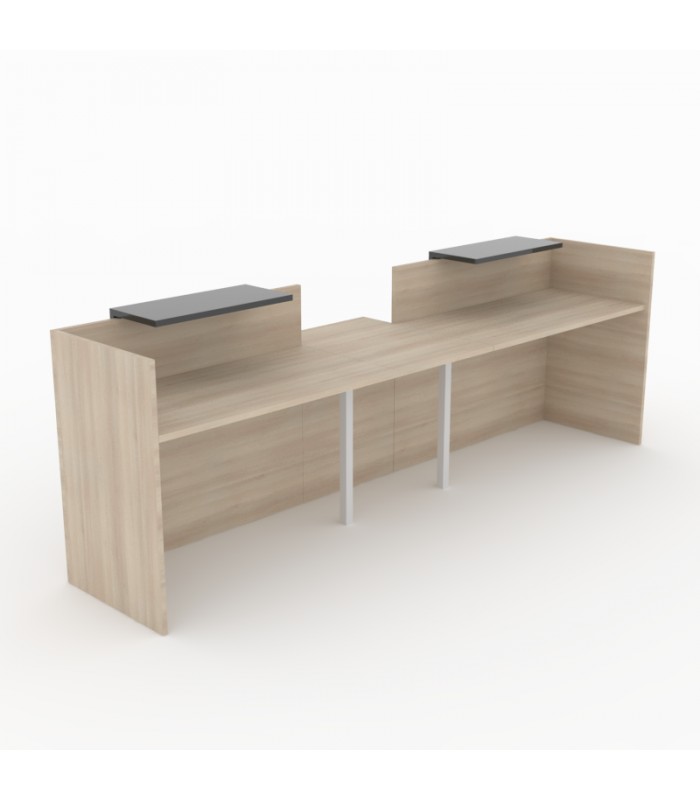 El primer punto de contacto con un cliente es el mostrador de recepción, y debe ser funcional tanto para los trabajadores como para los visitantes. Nuestro modelo Drome Twin DL se destaca en la inclusión al contar con una zona baja adaptada para personas con necesidades especiales, promoviendo la accesibilidad. Fabricado con melamina de alta calidad y un diseño versátil para adaptarse a cualquier entorno de oficina. Los laterales altos brindan mayor privacidad y comodidad en el área de trabajo. El tablero DL de 19mm aporta un atractivo acabado de alto brillo.