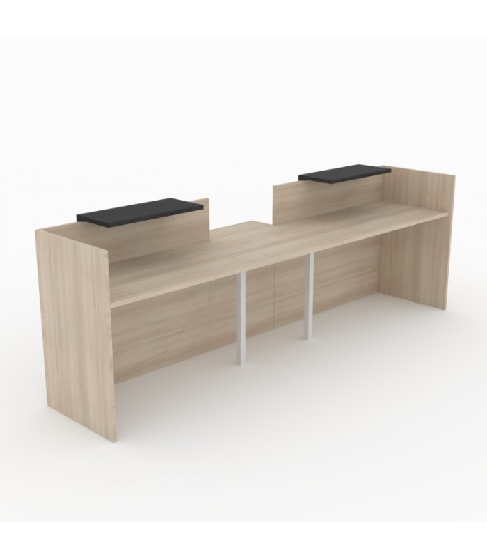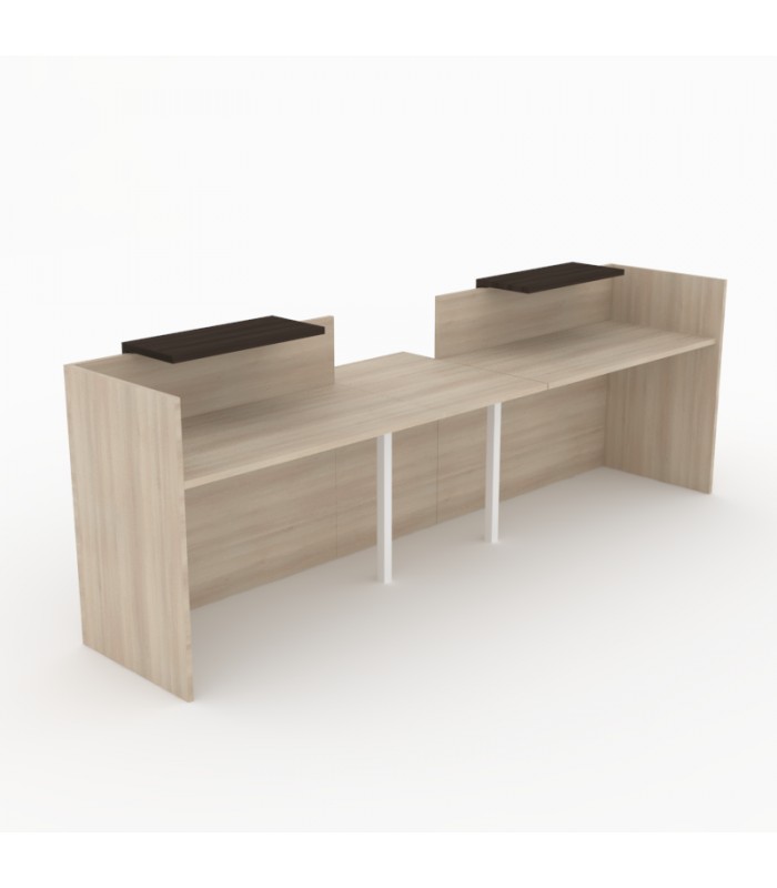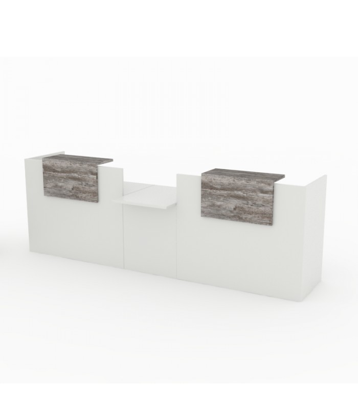 El mostrador Drome Twin SY es más que un simple elemento de mobiliario de oficina, es la primera impresión que tus clientes recibirán al llegar. Su diseño funcional no solo beneficia a los trabajadores, sino que también está diseñado para satisfacer las necesidades de todos los visitantes, incluyendo aquellos con necesidades especiales. La inclusión es clave en este modelo, con una zona baja adaptada para personas con movilidad reducida, demostrando un compromiso con la accesibilidad. Este mostrador está fabricado completamente en melamina de alta calidad, con un diseño versátil que se adapta a cualquier entorno de oficina. Los laterales altos brindan una mayor privacidad y disponibilidad en la zona de trabajo. Además, el tablero syncron con texturas al tacto en los sobremostradores aporta una imagen natural y atractiva.