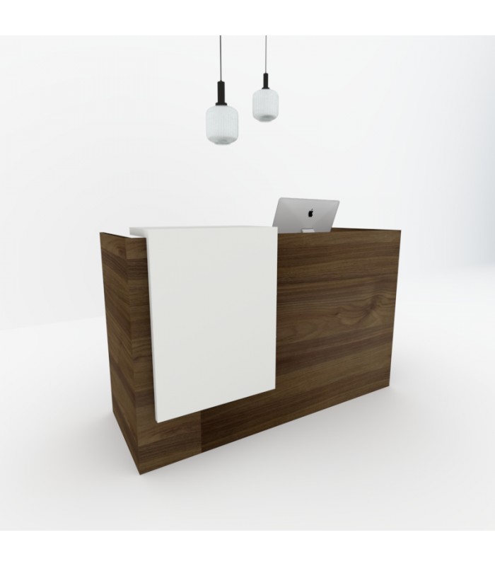 Los colores disponibles para el mostrador y el sobremostrador son blanco, nogal, olmo, acacia y gris azabache. -