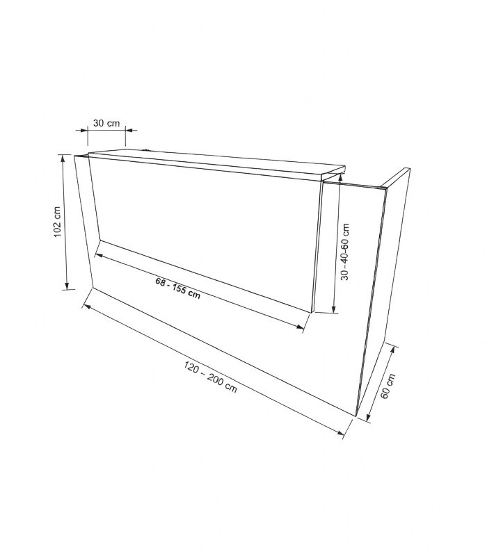 • Medidas sobremostrador: 135-155 x 40-60 x 30 cm (largos x alto x fondo)