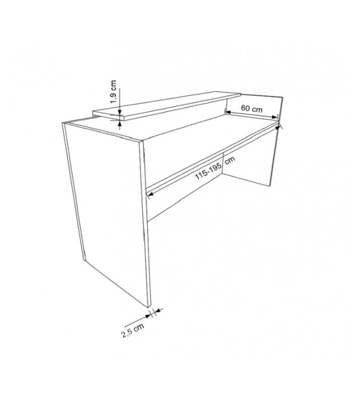 • Mostrador fabricado íntegramente en tablero bilaminado de 25 mm de grosor.