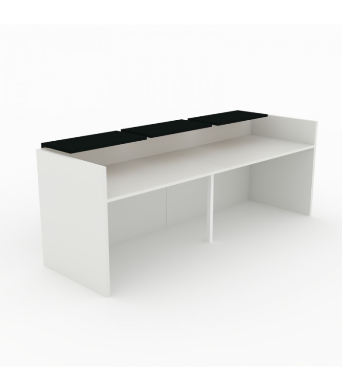 El mostrador Triplet color, está fabricado en melamina, de color blanco y con un grosor muy aceptable y resistente de 25mm. Es un modelo que se destaca por el colorido que ofrecen sus 3 sobremostradores, que aporta dinamismo y un estilo moderno a la recepción. Es un diseño versátil que se adapta a cualquier entorno de oficina. Su estructura de 25mm garantiza robustez y seguridad.