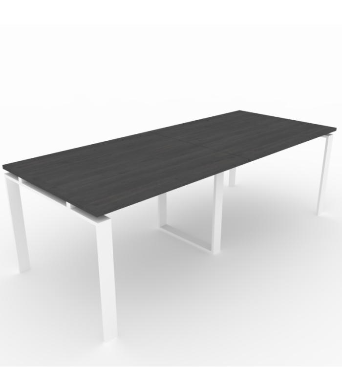 • Estructura metálica, de dos patas con forma de U invertida, y una central en forma de cuadrado fabricadas en tubo con una sección de 80x20mm. Largueros metálicos, de refuerzo, en tubo de 30x30mm, bajo la tapa de mesa.