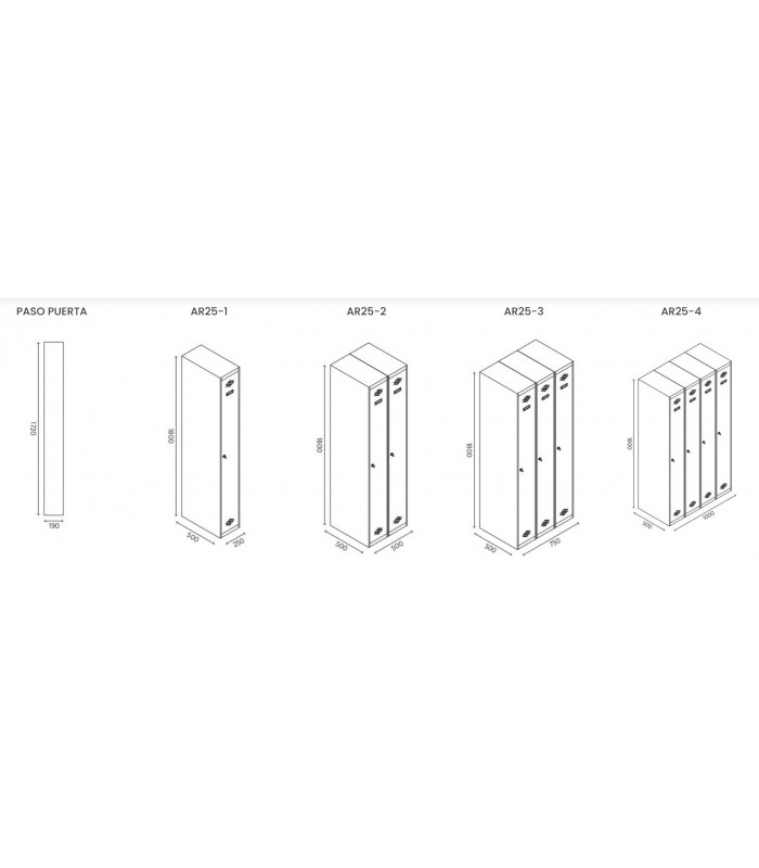 Os armários de vestiário com uma ou mais portas em coluna são conhecidos como guarda-roupas, pois possuem uma barra para pendurar roupas. Eles têm grelhas de ventilação nas portas e são armários usados em vestiários e espaços públicos para guardar itens pessoais, como roupas, bolsas esportivas, bolsas, capacetes, livros, etc. Eles são fabricados em blocos de uma porta, os mais comuns, ou em múltiplos corpos, que são dispostos formando baterias de várias unidades.