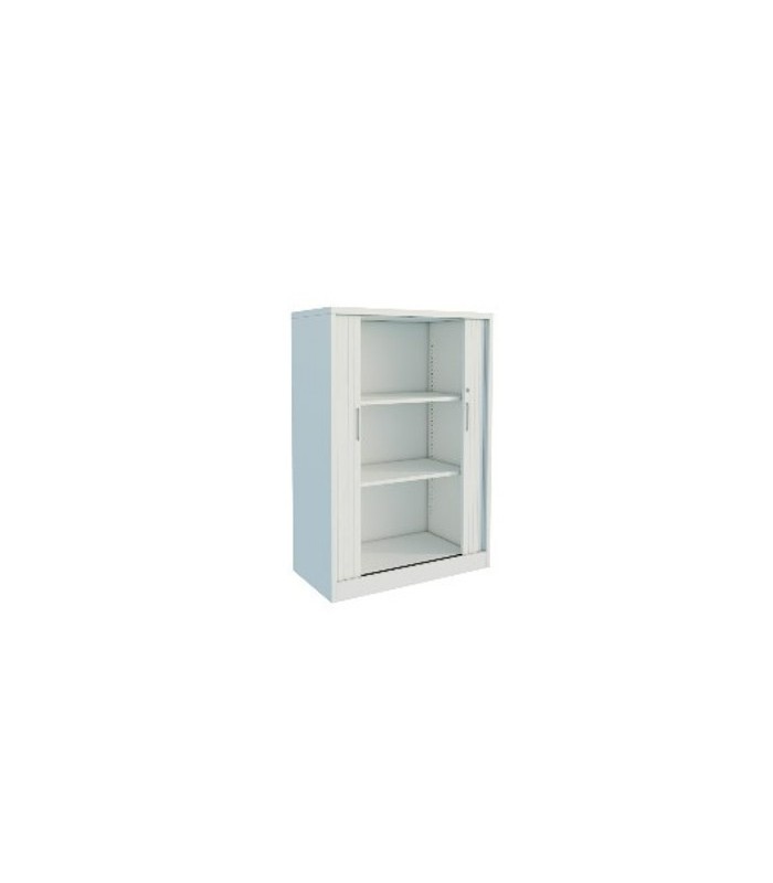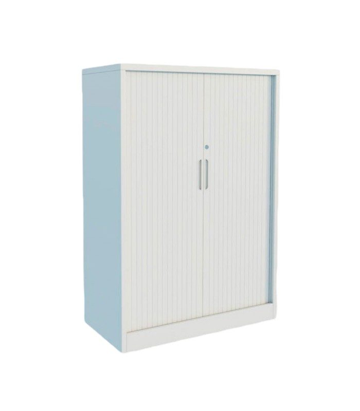 Armários médios para arquivo de escritório em chapa de aço, com design otimizado para oferecer a máxima funcionalidade graças às portas de persiana. A série Altea está disponível em três alturas diferentes e nas cores branco, preto ou cinzento-prata. Portas de persiana com lâminas verticais em PVC de 22 mm, com o mesmo acabamento de cor da estrutura.