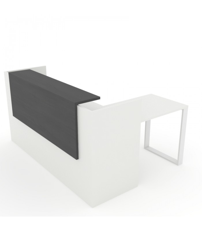 Um balcão em forma de L, com um lado composto por uma mesa para atendimento de pessoas com mobilidade reduzida ou como mesa de atendimento personalizado. Fabricado em melamina de alta qualidade com espessura de 25mm. O design é muito funcional e, ao mesmo tempo, oferece uma visão perfeita para qualquer espaço onde é necessária uma atenção ao público antes de entrar em nosso escritório, clínica, salão de beleza ou em qualquer lugar onde seja necessário ter um balcão. Devemos ter em mente que a recepção é a primeira imagem que a empresa transmite aos visitantes. É essencial que o balcão tenha design, seja funcional e proporcione um ambiente agradável aos clientes. A variedade de medidas oferecidas, bem como as opções de cores, facilitam a escolha do balcão que melhor atenda às necessidades da empresa. Opção de passagem de cabos disponível, confira as opções disponíveis no menu de acessórios, dentro da categoria de mesas de escritório.