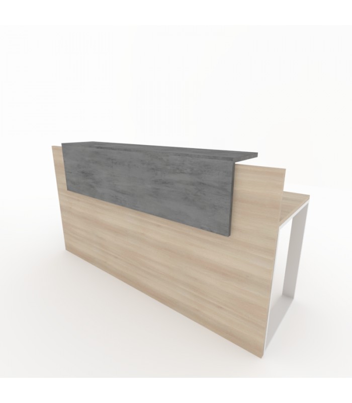 Voltamos a apresentar uma imagem atual com as placas usadas na fabricação do balcão de atendimento decorativo e funcional de nossos balcões SY, uma placa com uma leve textura ao toque de 19 mm. A recepção é a primeira impressão que sua empresa dá aos visitantes; é essencial que o balcão tenha um design, seja funcional e cumpra a função para a qual foi destinado, proporcionando um bom ambiente aos clientes. Todo o balcão é fabricado em melamina de alta qualidade, com uma espessura de 25 mm, com uma mesa de trabalho apoiada em pernas metálicas de forma quadrada, o que lhe confere uma imagem moderna. É uma escolha acertada usar a cor, desde cores naturais para uma aparência mais tradicional, até o branco para um estilo moderno e luminoso, altamente recomendado para recepções com espaço reduzido. A cor complementa a identidade visual da empresa, enquanto as linhas retas conferem um caráter dinâmico e funcional à recepção. Possibilidade de passa-fios, você encontrará os disponíveis no menu de acessórios, na categoria de mesas de escritório.