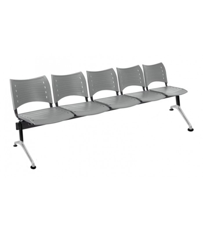 Bancada de 5 lugares em polipropileno fabricada com material seguro para uso intensivo. Suporte em estrutura de aço com pernas de alumínio. Higiênica e fácil de limpar, oferece conforto e uma ampla variedade de cores.