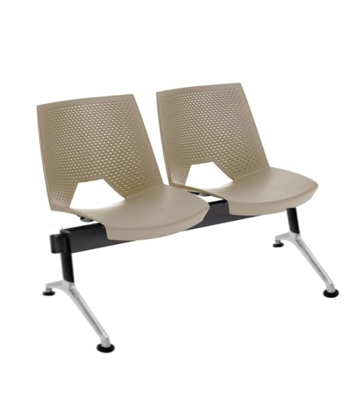 Sofá de 2 lugares com estrutura monobloco e encosto perfurado para transpiração. Estrutura de aço com pés de alumínio, ideal para uso intensivo. Higiênico, fácil de limpar e proporciona conforto, com estilo moderno para recepções ou salas de espera. Disponível em diferentes tamanhos com opção de mesa (consulte a opção). Dimensões: largura total 108 cm, profundidade total 50 cm, altura do assento 45 cm, largura do assento 44 cm, altura do encosto 75 cm.