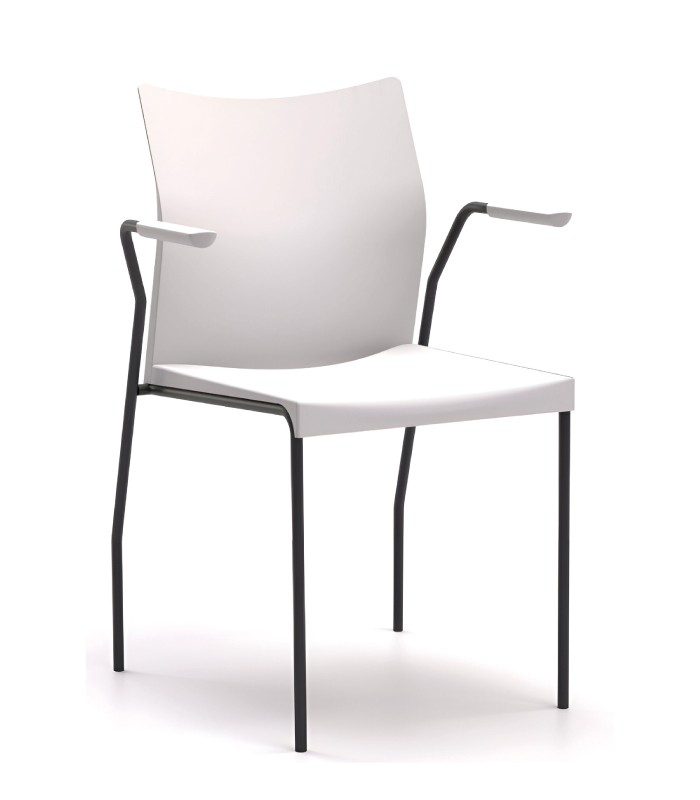 • Apoios de braços em aço pintado a condizer com a estrutura, com apoios de braços em polipropileno a condizer com a cor da concha.