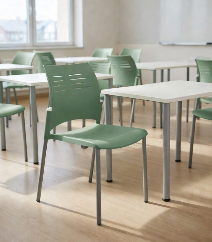A cadeira SPACIO combina simplicidade e robustez na sua estrutura e funcionalidade. O seu design e a grande variedade de cores combinadas tornam-no perfeito para utilização em espaços como salas de formação, salas de conferências e comunidades. É feito de polipropileno e pode ser empilhado. A sua estrutura é em epóxi aluminizado.