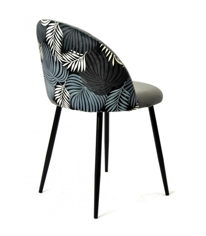 Cadeira de design estofada em tecido de veludo. O seu design, com encosto curvo e costura vertical, oferece o máximo conforto. As pernas em metal preto proporcionam estabilidade e um contraste moderno, enquanto o estampado floral colorido nas costas dá um toque único e original. Ideal para salas de estar, salas de jantar, escritórios, salas de reunião ou de espera ou qualquer canto especial da sua casa.