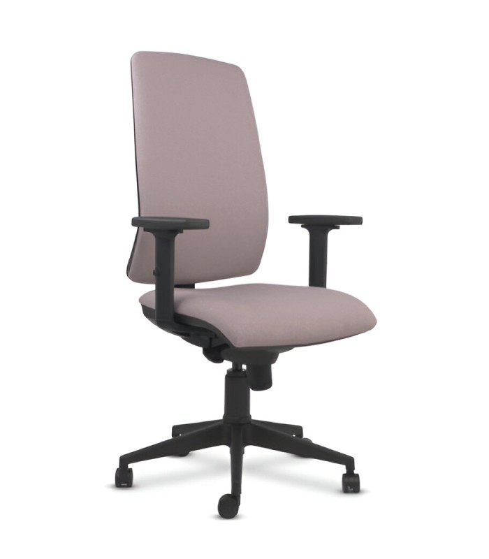 Cadeira concebida para quem procura conforto sem renunciar ao estilo, pois combina design, ergonomia e conforto. O seu assento e encosto totalmente estofados numa vasta gama de cores conferem-lhe um aspeto sofisticado e profissional, bem como uma textura suave e agradável ao tato. O seu sistema de regulação em altura, juntamente com os apoios de braços reguláveis, permite-lhe adaptar-se a diferentes necessidades e tipos de secretária. A sua base em forma de pirâmide com rodízios silenciosos permite uma estabilidade e mobilidade sem esforço. Ideal para escritórios, home offices, secretárias domésticas ou espaços de coworking.
