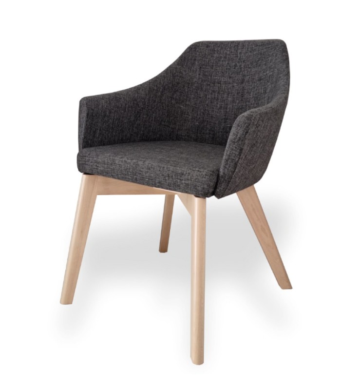 Esta elegante cadeira com pernas de madeira caracteriza-se pelo seu estilo minimalista e conforto, tornando-a uma escolha ideal para espaços de trabalho, salas de reuniões, escritórios, gabinetes ou mesmo para a casa. O assento e o encosto são estofados em tecido One, um tecido com uma textura suave. Os apoios de braços integrados oferecem um suporte adicional, favorecendo uma postura ergonómica. As pernas são feitas de madeira de faia natural, proporcionando um apoio forte e duradouro. Concebida com materiais de alta qualidade.