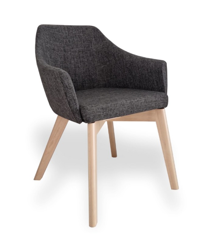 Esta elegante cadeira com pernas de madeira caracteriza-se pelo seu estilo minimalista e conforto, tornando-a uma escolha ideal para espaços de trabalho, salas de reuniões, escritórios, gabinetes ou mesmo para a casa. O assento e o encosto são estofados em tecido One, um tecido com uma textura suave. Os apoios de braços integrados oferecem um suporte adicional, favorecendo uma postura ergonómica. As pernas são feitas de madeira de faia natural, proporcionando um apoio forte e duradouro. Concebida com materiais de alta qualidade.