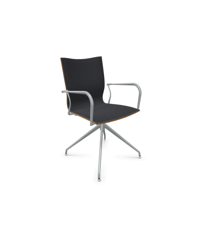 Esta cadeira é uma solução elegante e versátil para escritórios modernos, salas de reuniões e espaços de trabalho colaborativos. O seu design contemporâneo combina um assento e encosto amplos e ergonómicos, que garantem uma experiência confortável mesmo durante utilizações prolongadas, fabricados em casco monobloco de madeira lacada com revestimento em pele estofada. Incorpora apoios de braços integrados que proporcionam maior conforto e uma base giratória em aço aluminizado, com sistema de auto-retorno de grande estabilidade, assegurando resistência e durabilidade no uso diário. Graças aos seus materiais de alta qualidade e às suas linhas limpas e profissionais, a cadeira IKARA integra-se perfeitamente em ambientes corporativos, escritórios e espaços contract, oferecendo funcionalidade, estilo e uma imagem cuidada que reforça o design do espaço.