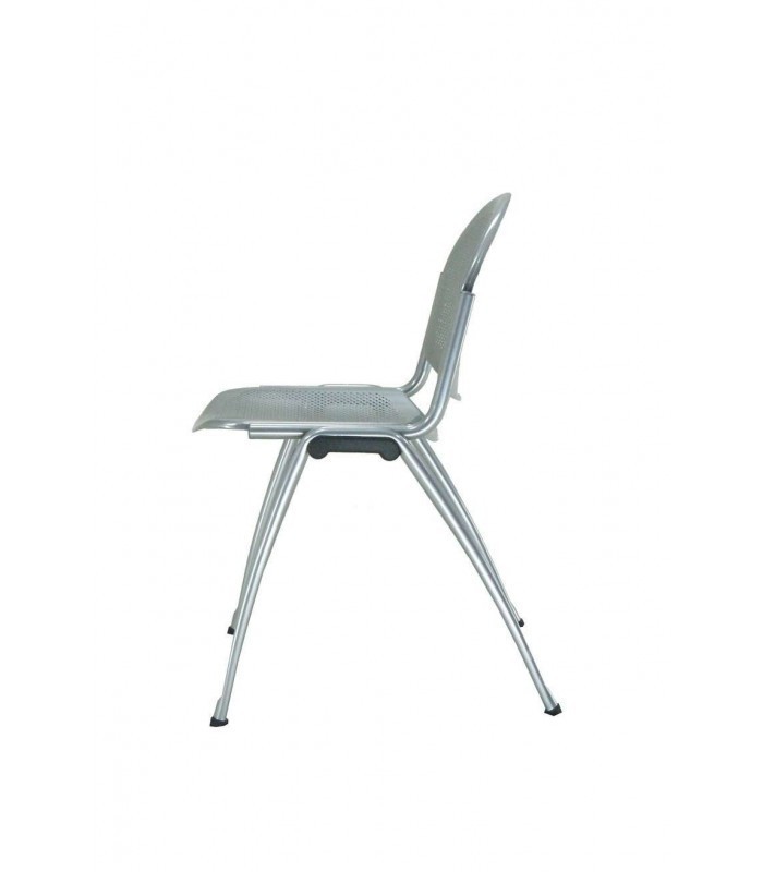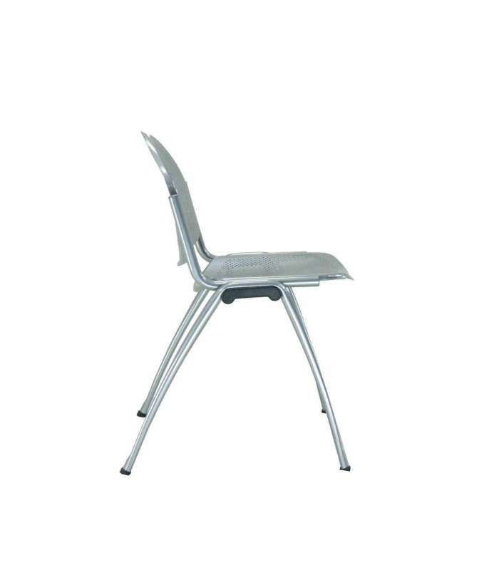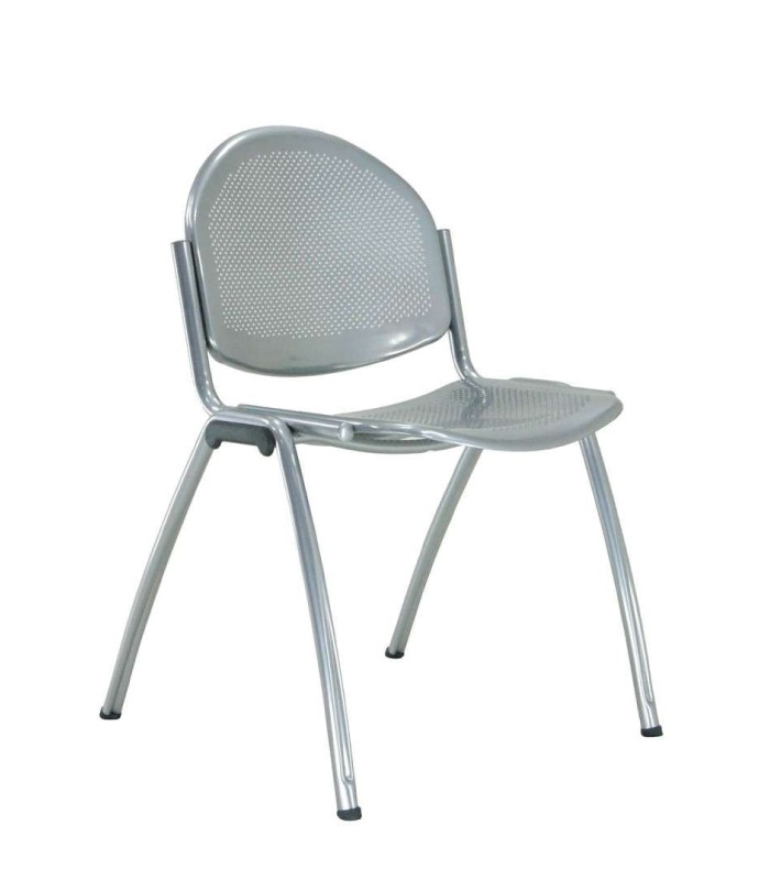 Cadeira para formação ou espaços coletivos, fabricada inteiramente em material metálico, com assento e encosto perfurados para facilitar uma melhor ventilação. Possui uma pintura em cinza metálico, chamada de automotiva, que lhe confere um toque industrial muito procurado atualmente. É perfeitamente empilhável, o que a torna mais necessária em espaços que requerem um fluxo diferente de visitantes e que podem ter cadeiras reservadas, ocupando o mínimo de espaço, para ocasiões que exigem maior afluência.