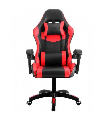 Cadeira de jogos de escritório, com design de corrida e encosto alto. A ergonomia perfeita para os momentos de lazer dos jogadores online. Vem com almofadas de cabeça e lombar removíveis de série, que podem ser ajustadas para a posição necessária para obter a postura mais confortável e evitar dores nas costas durante longas horas na frente da tela. Versátil, também é recomendada como cadeira operacional para escritórios que desejam transmitir uma imagem muito atual e jovem do ambiente.