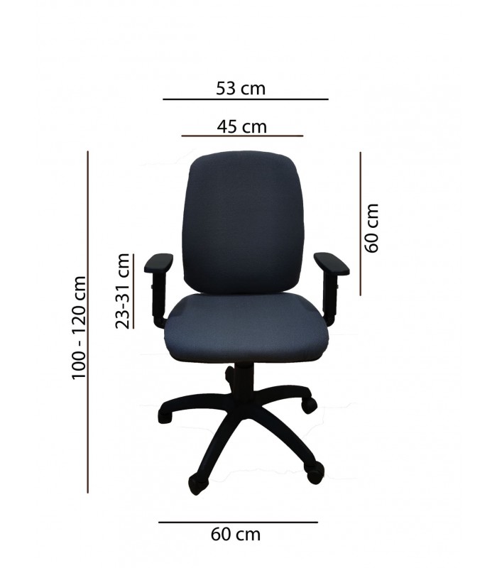 Cadeira giratória de escritório, com uma estética clássica, entre as cadeiras operativas, que se destaca por sua força e durabilidade no uso contínuo de longas jornadas de trabalho. Com assento e encosto com acolchoamento generoso com espuma injetada e com um revestimento têxtil de ampla gama de cores e resistência ao uso. Não deixa indiferente a ótima relação qualidade-preço, uma das mais econômicas para tudo o que oferece.