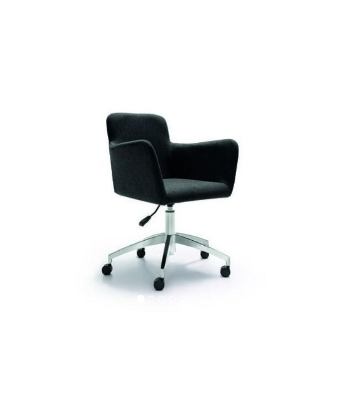 Muito especial esta cadeira giratória, de estilo moderno, que adiciona um toque definitivo de estilo ao ambiente em que se encontra. É um daqueles designs que não nos deixa indiferentes, devido à sua grande proporcionalidade. Com encosto baixo e volume compacto, a perfeita combinação de encosto, assento e braços integrados na estrutura é a essência do seu design. Neste modelo, possui rodas, mas também pode ser adquirida com fixadores para evitar movimentos indesejados.