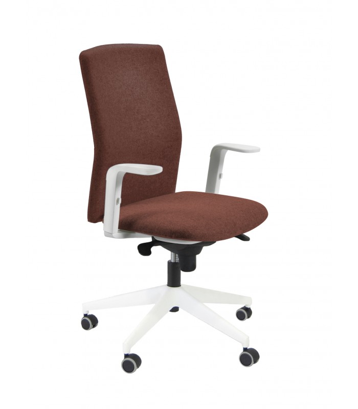 Silla giratoria de respaldo anatómico, tapizado. Mecanismo SINCRO, movimiento de asiento y respaldo sincronizado. Respaldo con regulación de altura por cremallera, sistema anti-retorno, regulación de presión y carcasa exterior con embellecedor cromado. Acolchado en poliuretano de alta densidad en asiento e inyectado en el respaldo. Regulación de altura mediante columna neumática. Base giratoria en poliamida reforzados con fibra de vidrio. Ruedas de rodadura blanda de Ø 50 mm.