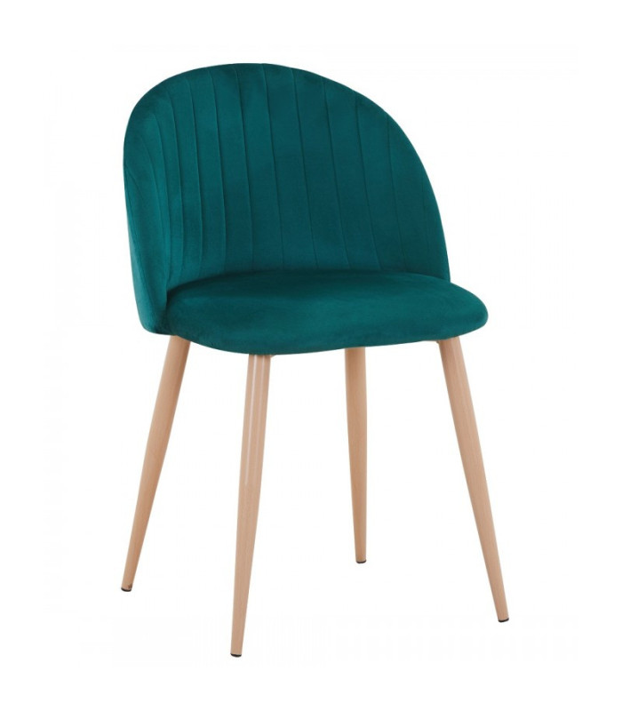 Cadeira de design, com estrutura metálica muito resistente. Pernas metálicas pintadas com acabamento imitação de madeira, assento e encosto estofados em veludo Velvet em cores a escolher. Uma cadeira versátil, agradável e confortável que pode ser usada como cadeira de escritório para visitantes, em áreas de espera, em espaços versáteis, como salas de conferências ou salas de reuniões, ou simplesmente como decoração para um escritório de direção.