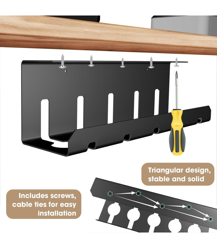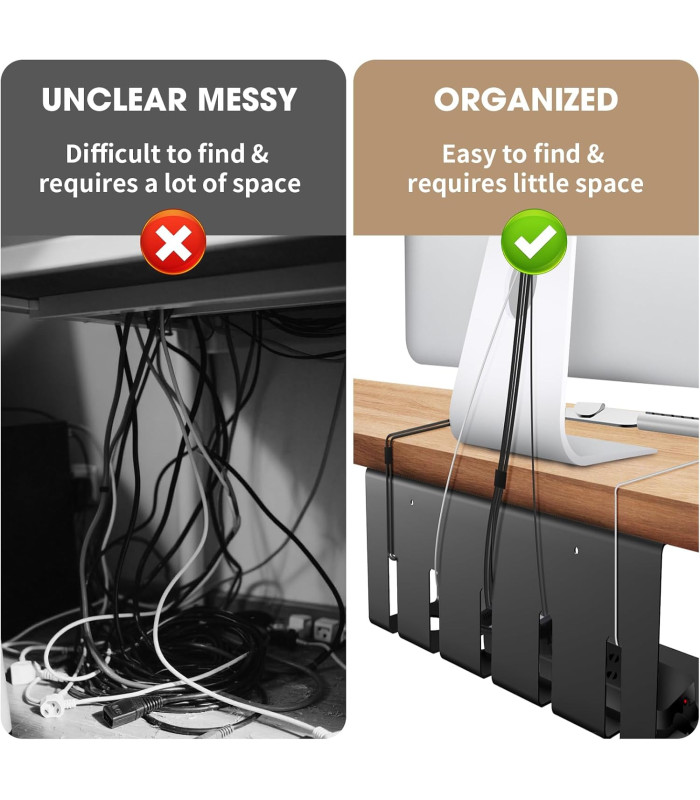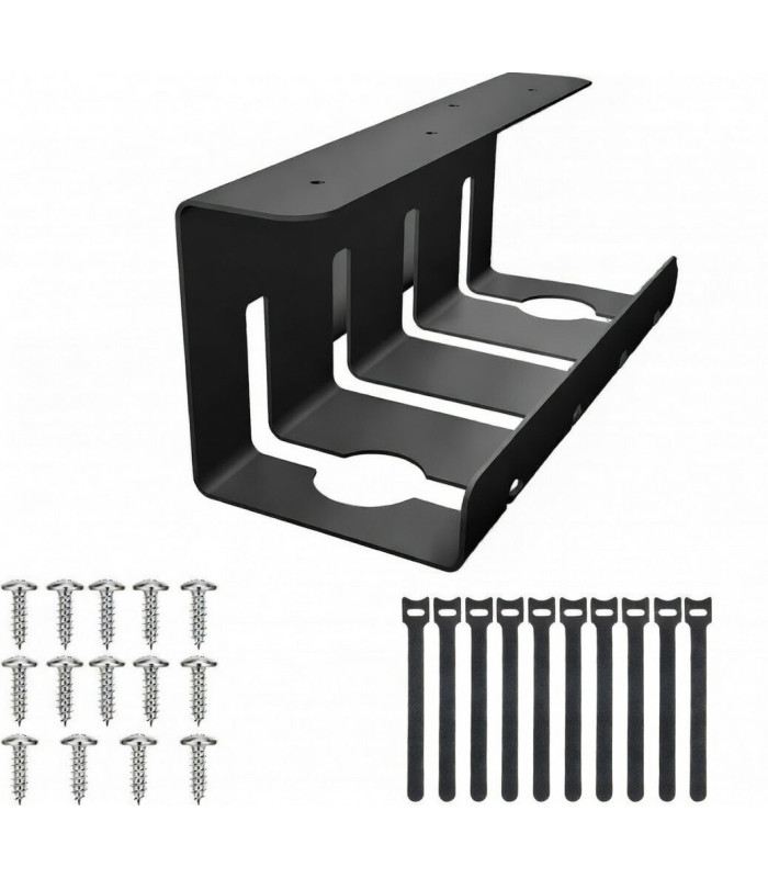 Optimize a arrumação e a segurança do seu espaço de trabalho com este suporte para cabos, acessórios de carregamento e extensões eléctricas. O seu design robusto e elegante, fabricado em aço de alta qualidade com um revestimento não abrasivo, permite uma montagem fácil sob a secretária ou na parede, proporcionando uma solução prática para a gestão de cabos. Ideal para escritórios e secretárias.
