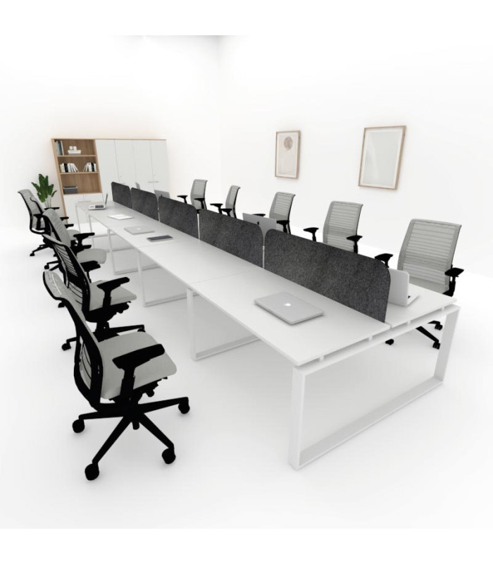 Tire o máximo partido de cada metro e transforme o seu escritório num espaço produtivo e moderno. As nossas secretárias com vários lugares foram concebidas para se adaptarem à dinâmica de trabalho atual, combinando funcionalidade, estilo e resistência. Apresentam uma estrutura metálica robusta e tampos de mesa em melamina de 25 mm, garantindo durabilidade mesmo nos dias de trabalho mais exigentes. Divisórias acústicas e divisórias com design ergonómico ajudam a melhorar a concentração e o conforto, criando o ambiente perfeito para o trabalho em equipa sem sacrificar a privacidade. Perfeitas para escritórios modernos, espaços de colaboração ou áreas de trabalho flexíveis. Também pode personalizá-las com práticos passa-cabos disponíveis na nossa secção de acessórios, na categoria de secretárias de escritório.