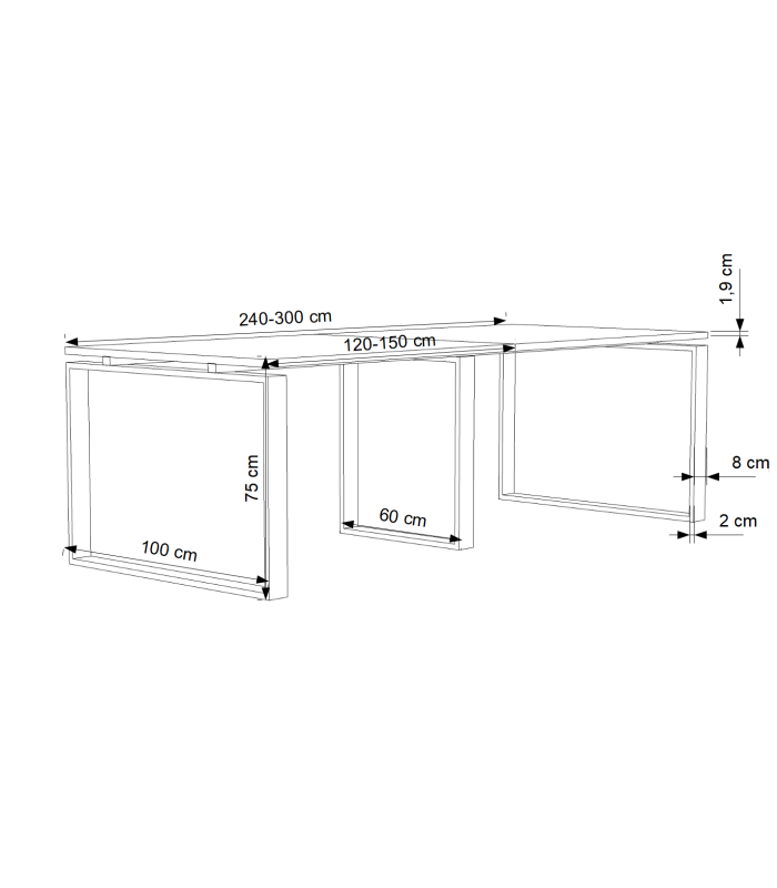 - Comprimentos e profundidades: 240x100 cms e 300x100 cms.
