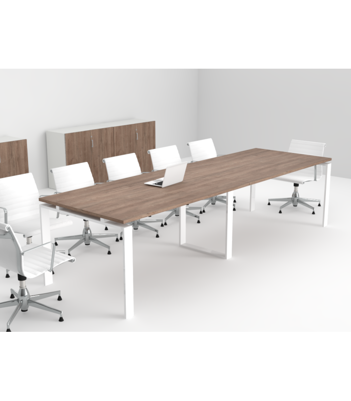 Temos a mesa de reunião perfeita para qualquer escritório. O trabalho em equipe é um dos pilares das organizações modernas. Isso nos levou a criar uma coleção de mesas de reunião que ajudam a criar um ambiente dinâmico e interativo em qualquer empresa. Neste modelo, oferecemos uma textura diferente em cada uma das cores que compõem a linha Syncron. As cores com toque de madeira, como ICW, ou aquelas que têm uma aparência metálica, como OXD, são as mais procuradas nesta categoria, projetada para chamar a atenção assim que é vista. Elas proporcionam uma sensação muito atual ao espaço, graças às texturas naturais e à paleta de cores fácil de combinar com qualquer mesa de escritório que já tenhamos ou com nossas mesas de trabalho com o mesmo tipo de tampo. Possibilidade de incluir passa-cabos, você encontrará as opções disponíveis no menu de acessórios, na categoria de mesas de escritório.