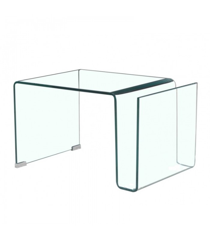 Mesa baixa, vidro curvado, 47x42 cm, ATLANTIS