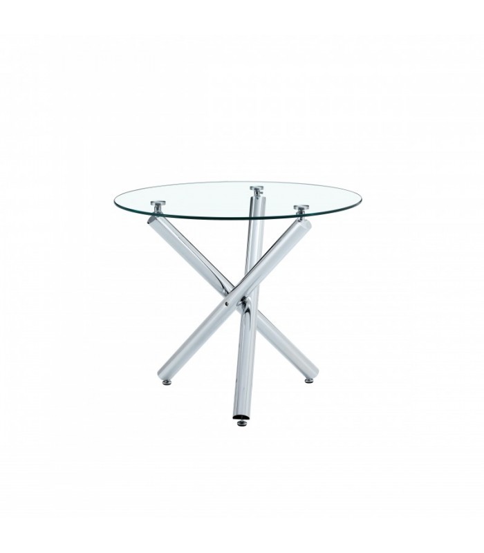 O modelo DESIREE é uma elegante mesa redonda em vidro temperado. As suas pernas tubulares cromadas tornam-na num modelo minimalista e contemporâneo, proporcionando uma estrutura robusta e estável. Ideal para salas de estar, salas de jantar, salões e escritórios.