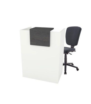 Pack para receção ou atendimento ao cliente. É composto por um pequeno balcão moderno e compacto, fabricado em melanima de alta qualidade, com 25 mm de espessura, em branco e um balcão ideal para um atendimento cómodo, adaptando-se a ambientes como lojas, salões de beleza, oficinas ou pequenos espaços. A cadeira de escritório estofada em tecido tem um assento e um encosto estofados com espuma injectada. Tem uma base de cinco pernas e rodízios que garantem uma mobilidade fluida e um ajuste personalizado de acordo com o utilizador. Resiste a longas jornadas com conforto e mantém uma presença profissional e discreta.