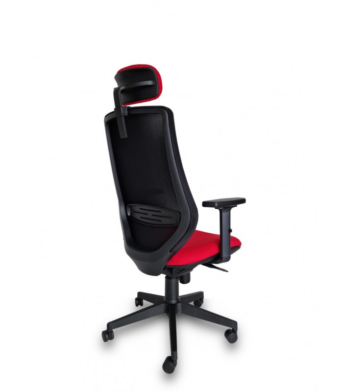 Cadeira giratória ergonômica, encosto alto em malha, com apoio de cabeça ajustável e assento estofado em tecido Leo, com mecanismo sincronizado. Novo design mais atual, com formas mais amplas no encosto que permitem manter a postura das costas para evitar lesões indesejadas. Os mecanismos que permitem obter a melhor ergonomia são muito fáceis de manusear até alcançar o ponto ideal que cada usuário precisa. Sem dúvida, uma ótima cadeira de escritório que pode ser usada tanto em um escritório executivo quanto em um posto de trabalho operacional.